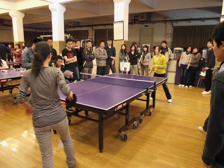 比赛采取团体赛淘汰制形式,共有男单、女单、男双、女双和混双五个项目,每个项目只比一局,每局11球,五局三胜制。经过抽签确定对阵队伍之后比赛于八点半正式开始。赛场上精彩纷呈,球员们精湛的技艺和完美的配合博得了现场观众和拉拉队员们的阵阵掌声和连连喝彩,场上处处展现着华理学子们良好的精神风貌和团队意识。