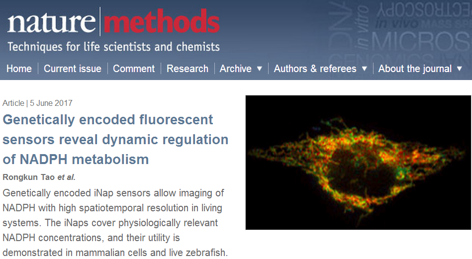 6月5日,国际权威学术期刊Nature Methods上以“研究长文”的形式在线报道了yl23411集团生物反应器工程国家重点实验室、永利23411集团杨弋教授、赵玉政研究员课题组与中国科学技术大学刘海燕教授课题组合作的研究成果:“Genetically encoded fluorescentsensors reveal dynamic regulation of NADPH metabolism”。