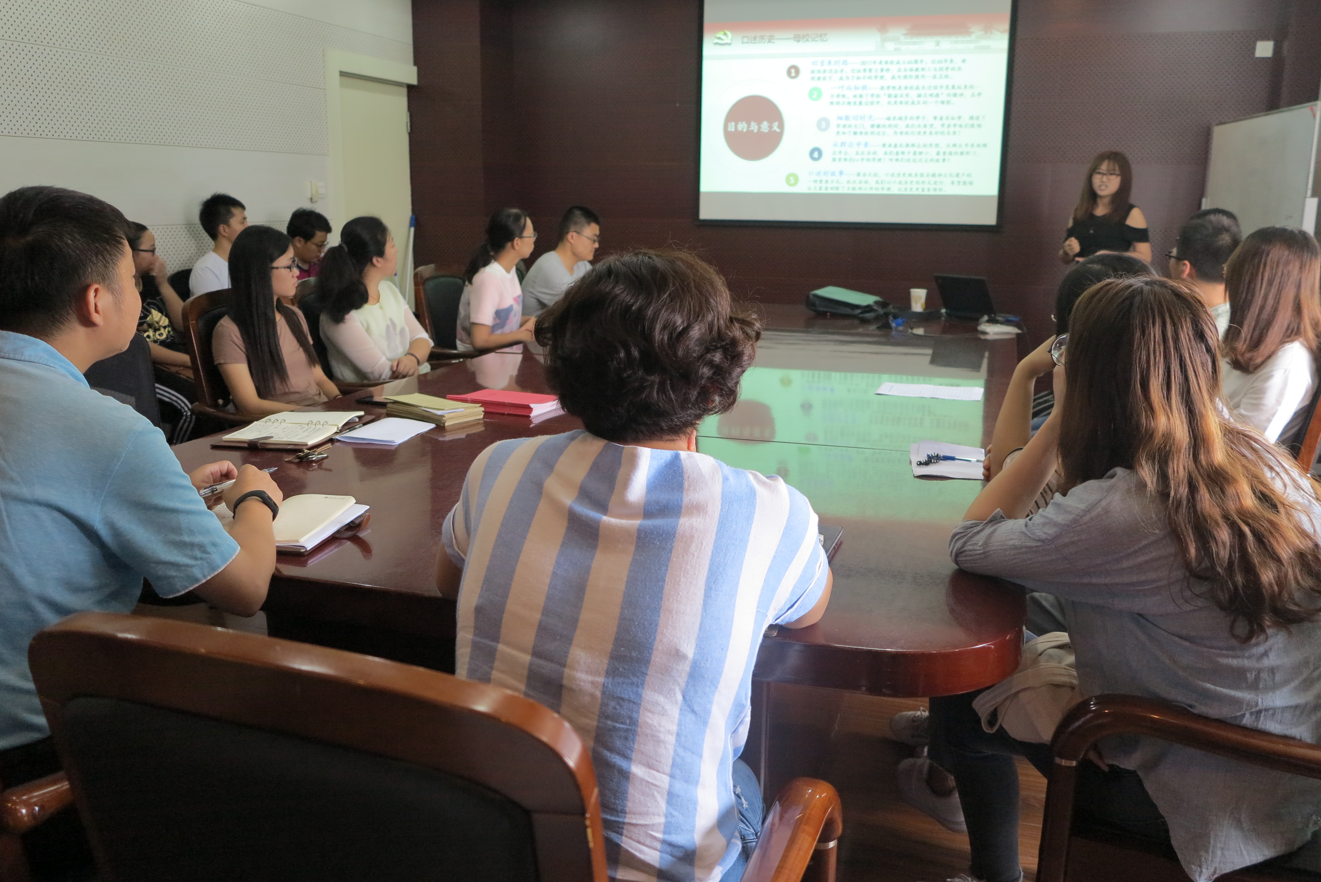 硕164班党支部书记于玲,以自己支部的一次组织活动“口述校史院史”作为示范培训案例,向大家集中展示。李剑提出中肯的指导性意见,并鼓励在座党员师生进行研讨。大家交流情绪热烈,纷纷就观摩案例提出新的想法新的建议,充分调动了各个党支部有效落实好主题党日和组织生活计划的积极性。