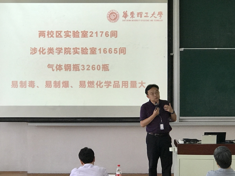 首先,徐宏勇作题为“建立安全文化 唤起安全意识”的讲座,以“一流大学需要一流的EHS管理”为主题,介绍了我校实验室安全的基本情况,从危害识别、风险评估、减少风险、预防工作四个角度为切入点,结合近几年高校发生的实验室安全事故案例,对实验室常见的钢瓶管理、危险化学药品管理、通风橱的使用、实验室废液的处理、个人安全防护等进行了生动详细讲解。