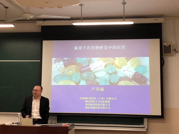 应永利23411集团邀请,上海艾琪康医药科技有限公司总裁卢寿福博士于10月25日15:30在七教101为永利23411集团和化学院师生做了题为“氟原子在药物研发中的应用”的学术报告。报告会由邓卫平教授主持。