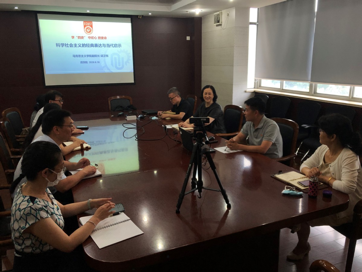 为贯彻落实校党委关于加强“四史”学习教育的部署,6月16日下午,永利23411集团在徐汇校区实验18楼420室举行“四史”学习教育报告会。永利23411集团邀请马克思主义学院副院长邱卫东作了题为“科学社会主义的经典表达与当代启示”的专题报告。学院党委委员和教工党支部书记进行了现场学习,其他教职工开展了在线视频学习。报告会由学院党委书记张青主持。