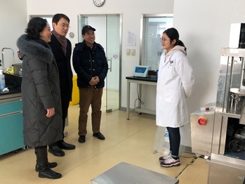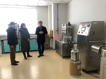 张青在陈挺的陪同下,首先参观了上海智同药物制剂研发中,并与正在实习的研究生进行了交流。