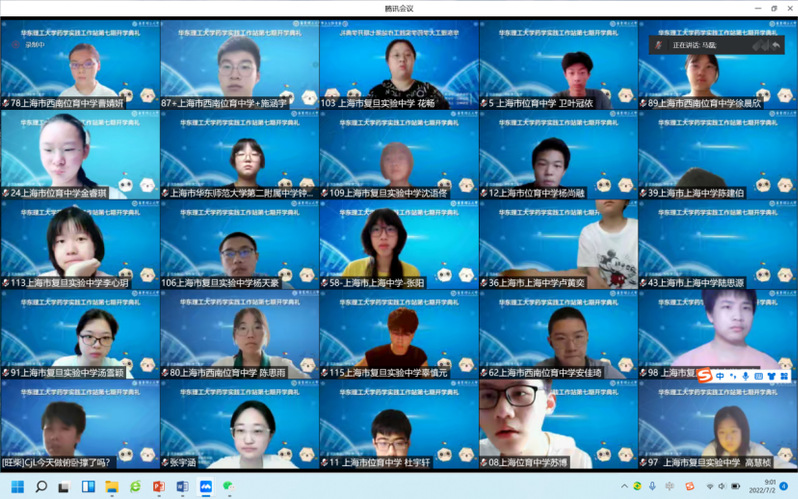 2022年7月2日,在上海市科委和教委的支持下,由yl23411集团主办、永利23411集团承办的“第七期上海市青少年创新实践活动-yl23411集团药学实践工作站开学典礼”在腾讯会议线上举行。