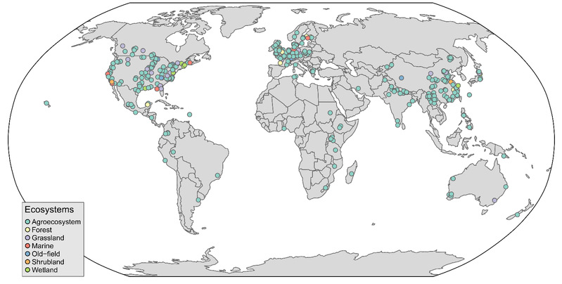已有理论研究与实践探索表明,利用生物多样性防控植物有害生物,是安全可行的生态环保技术途径之一,实施该技术控害的理论支撑主要来自物种多样性控害,例如,天敌假说、资源集中假说、保险假说、聚集假说(Wan* et al., J. Appl. Ecol., 2022)、营养级联动理论(Wan et al., Nature Plants, 2020)等。然而,基因多样性(或称“遗传多样性”)控害的理论相对较少。鉴于此,该文整合了全球413个植物多基因与单/纯基因的比较试验数据,结果显示:在农业、森林、草原、湿地、海洋等生态系统,增加植物基因多样性,提高了捕食性和寄生性天敌的丰度和捕食/寄生率,降低了植食性昆虫、杂草以及植物病害、线虫的侵害,提升了作物产量与品质以及植物生产力;并发现植物多基因与单/纯基因对增加农业、森林、草原等生态系统中的天敌及其增强控害效果并无显著影响。因此,在该类系统实施植物保护技术时,只需在主栽植物田块通过间套作同种其他1个品种,便可实现对植物病虫草的控制。