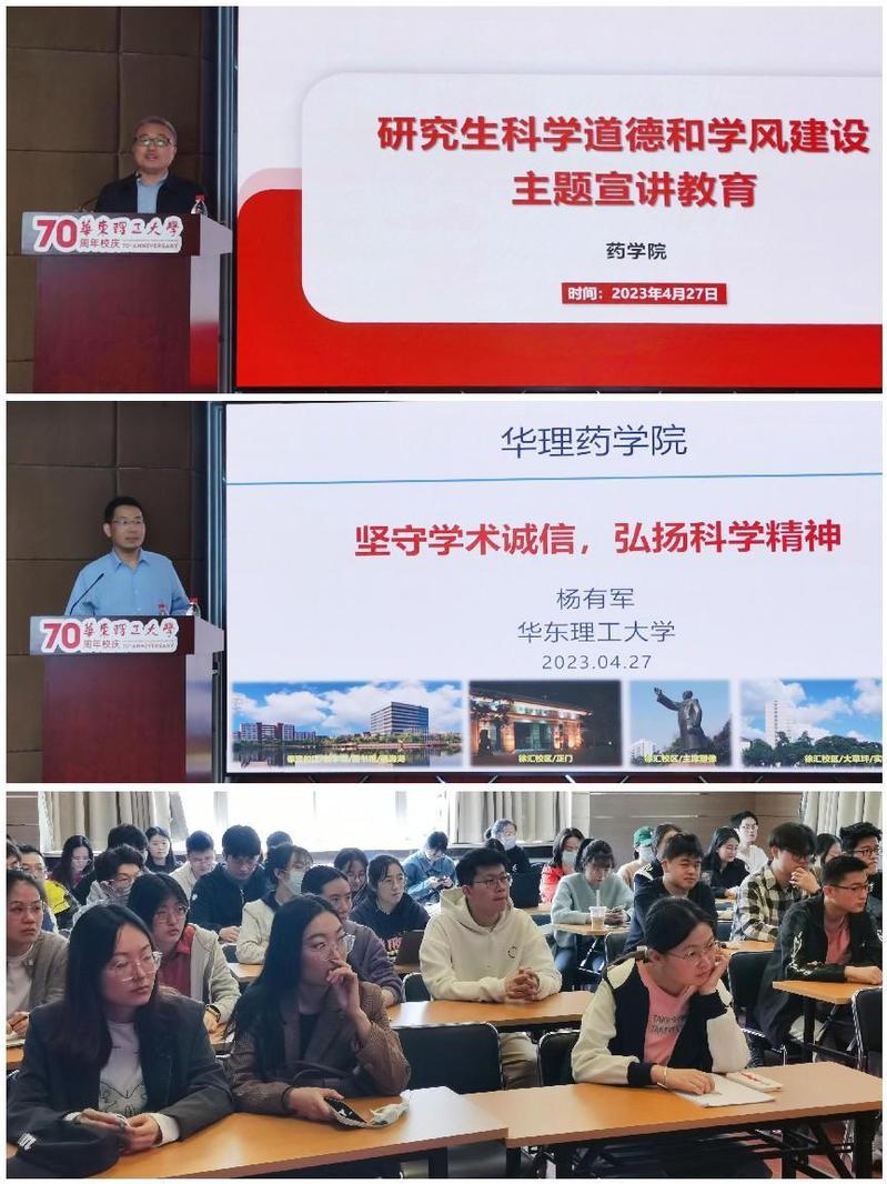 杨有军教授从学术道德规范定义、学校研究生学术道德文件规定、国内外涉及学术造假的典型案例等三个方面为同学们带来了一场精彩的讲座。他指出,科研诚信是科研工作者的立身之本,要时刻以科学、严谨、自律的态度做科研,严格遵守科学研究的基本规范,增强自律意识,维护学术尊严,营造良好的学术环境,为学术生态、学术诚信建设做出自己应有的贡献。