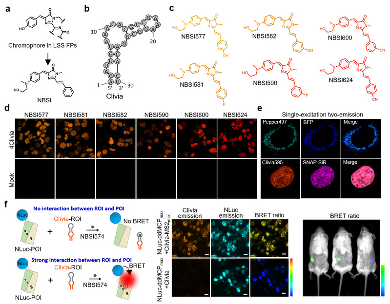 大斯托克斯位移荧光蛋白已被广泛应用于活细胞与活体蛋白质的多色荧光标记与成像。而Clivia则代表了大斯托克斯位移荧光RNA的原创性突破。Clivia具有高稳定性、高信噪比、高亮度,是目前唯一可用于活细胞分析的大斯托克斯位移荧光RNA,也是唯一可在活体上对RNA动态进行测量的荧光RNA。Clivia将为活细胞与活体RNA的多色成像以及RNA功能与调控机制研究提供极具价值的实用工具,也有望为活细胞与活体生物传感、即时诊断甚至实时诊断技术的发展提供新的机遇。