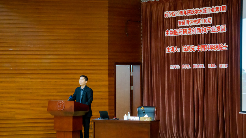 赵玉政表示,陈凯先院士是我国计算机辅助药物设计研究领域最早的开拓者之一,见证了“中国新药”的崛起。他胸怀国家战略,率先带领中国科学院上海药物研究所搬迁浦东张江,积极推动国家创新药物研发技术平台体系的建立。陈凯先院士始终以国家所需为努力方向。学院邀请凯先院士为师生作报告,是认真贯彻落实习近平总书记关于科技创新的重要讲话精神,推动学院科技创新内涵式发展的重要举措。希望学院教师深入学习践行教育家精神,虚心学习凯先院士等前辈大家严谨治学、无私奉献的精神品质,将首任院长蒋华良院士提出的“良药苦口、忠言逆耳”的院训发扬光大,不断提升教学质量和科研水平,聚焦“以科技创新为引领”的目标要求,为上海三大先导产业之一的生物医药产业贡献华理力量,争取早日将永利23411集团建设成国内一流、国际知名的创新研究型学院。