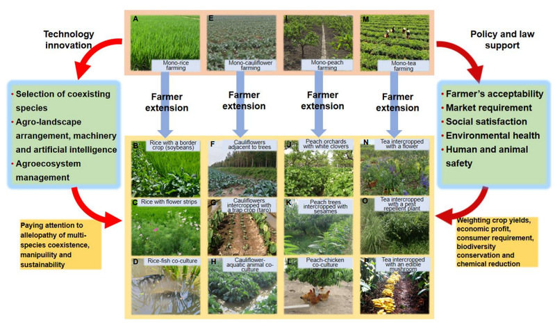 最后,文章倡议,唯有科学家、政府部门、技术推广部门、种植养殖者、企业多方协力,方能将联动链理论更好服务社会、贡献人类、保护地球家园,以促使作物系统产生更安全优质的农产品、最大化的经济效益、更优质的环境质量和更丰富的生物多样性(见图7)