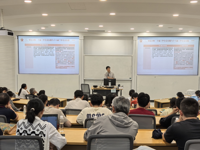 汪斌锋围绕党的二十届三中全会的重大意义、对比分析党的二十届三中全会公报与党的十八届三中全会公报内容、深入领会党的二十届三中全会的主要议程和《决定》的重点内容、增强学习贯彻党的二十届三中全会精神的思想和行动自觉四个方面展开阐述,并结合高校教育的背景,重点阐述了新时代大教育观内涵要求,强调在教育过程中不仅要关注知识的传授,更要注重学生的全面发展、实践能力和社会责任感,力求在快速变化的社会环境中,推动教育的持续改革与进步。