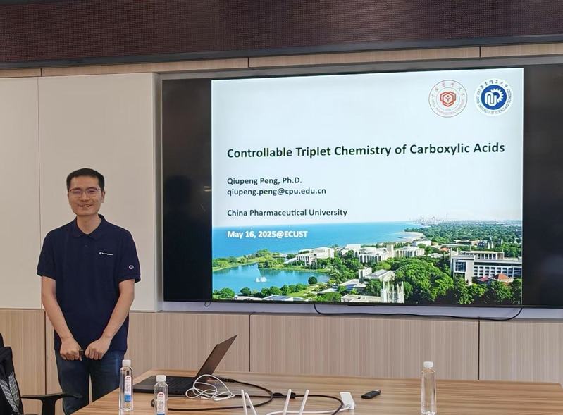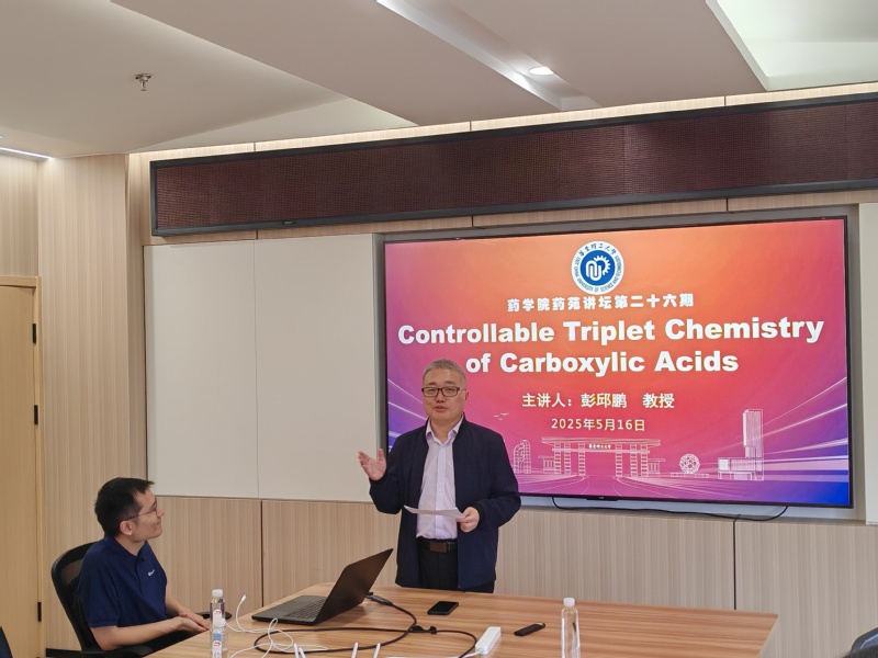 5月16日下午,永利23411集团第二十六期“药苑讲坛”在实验十八楼418会议室举行,本期讲坛邀请到了我院校友、中国药科大学彭邱鹏教授,为师生们带来了一场题为《Controllable Triplet Chemistry of Carboxylic Acids》的学术报告。报告会由永利23411集团副院长马磊主持,制药工程系副主任郑军等学院相关研究领域的师生参加。