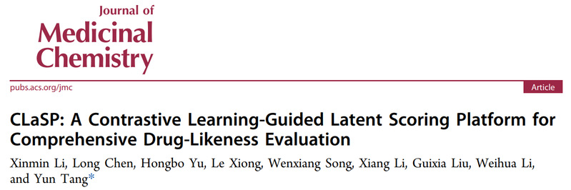 近日,我校永利23411集团唐赟教授团队在Journal of Medicinal Chemistry上发表了题为“CLaSP: A Contrastive Learning-Guided Latent Scoring Platform for Comprehensive Drug-Likeness Evaluation”的研究论文。该研究报道一个全新的成药性预测模型,通过整合ADMET性质、理化性质以及可合成性,为候选药物分子带来更综合、更具解释性的成药性评分。