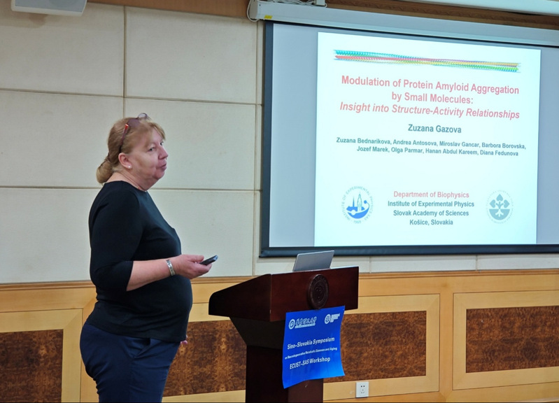 研讨会上,斯洛伐克科学院实验物理研究所所长Zuzana Gaová博士首先回顾了双方在生物医学领域长期以来的紧密合作与交流互访历程,并期待双方通过深化合作,开启相关领域发展新篇章。然后,Zuzana Gaová博士基于“神经退行性疾病多靶点治疗的中药小分子发现和机制研究”的双边合作项目框架下的“小分子调节淀粉样蛋白聚集研究”作学术报告,系统阐述了小分子在抑制淀粉样蛋白纤维化中的机制与应用前景。